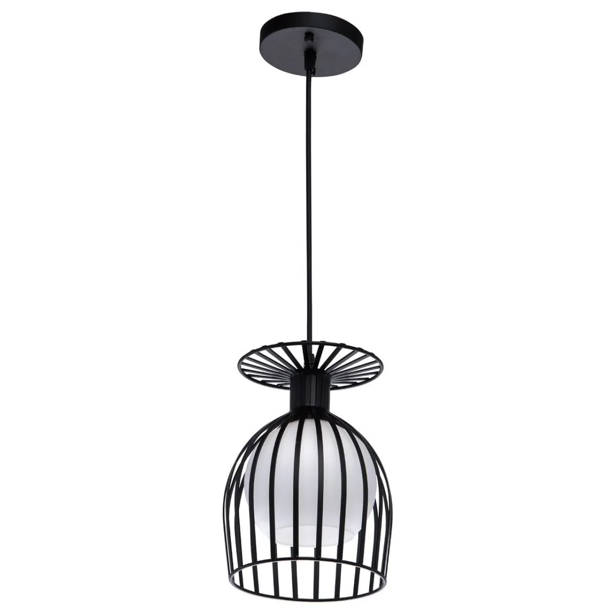 Металлическое основание черного цвета. Плафон: белое матовое стекло.