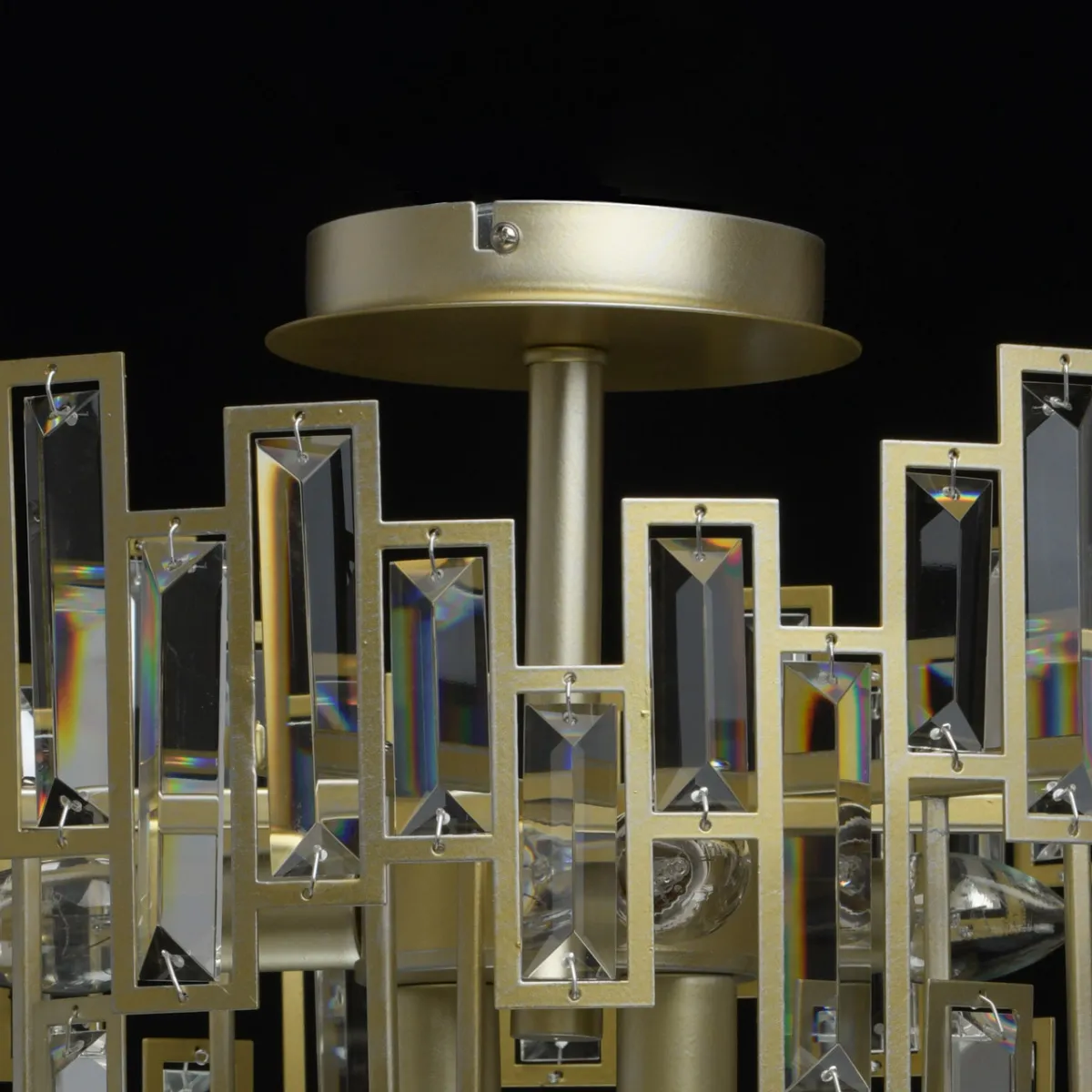 Металлическое основание цвета перламутрового золота. Декор - хрусталь.