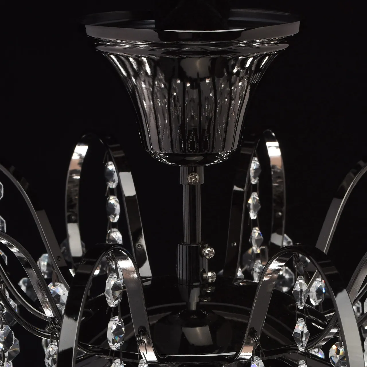Металлическое основание цвета никеля, декоративные подвески из хрусталя.